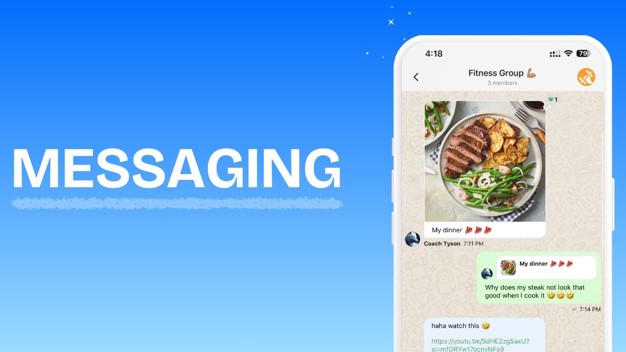 1:1 chats, group threads, voice notes, GIFs, and polls. Coaching lives where accountability happens, not in your inbox or DMs.